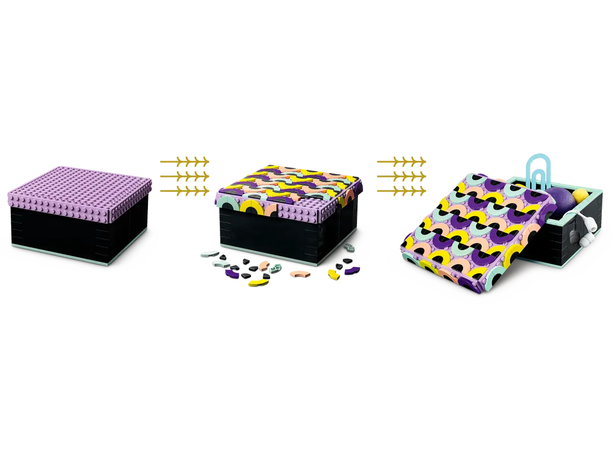 - Make it, design it, use it – Surprise any kid or arts-and-crafts fan with this LEGO® DOTS Big Box (41960) craft kit. The creative fun begins when they open the package and start making the box