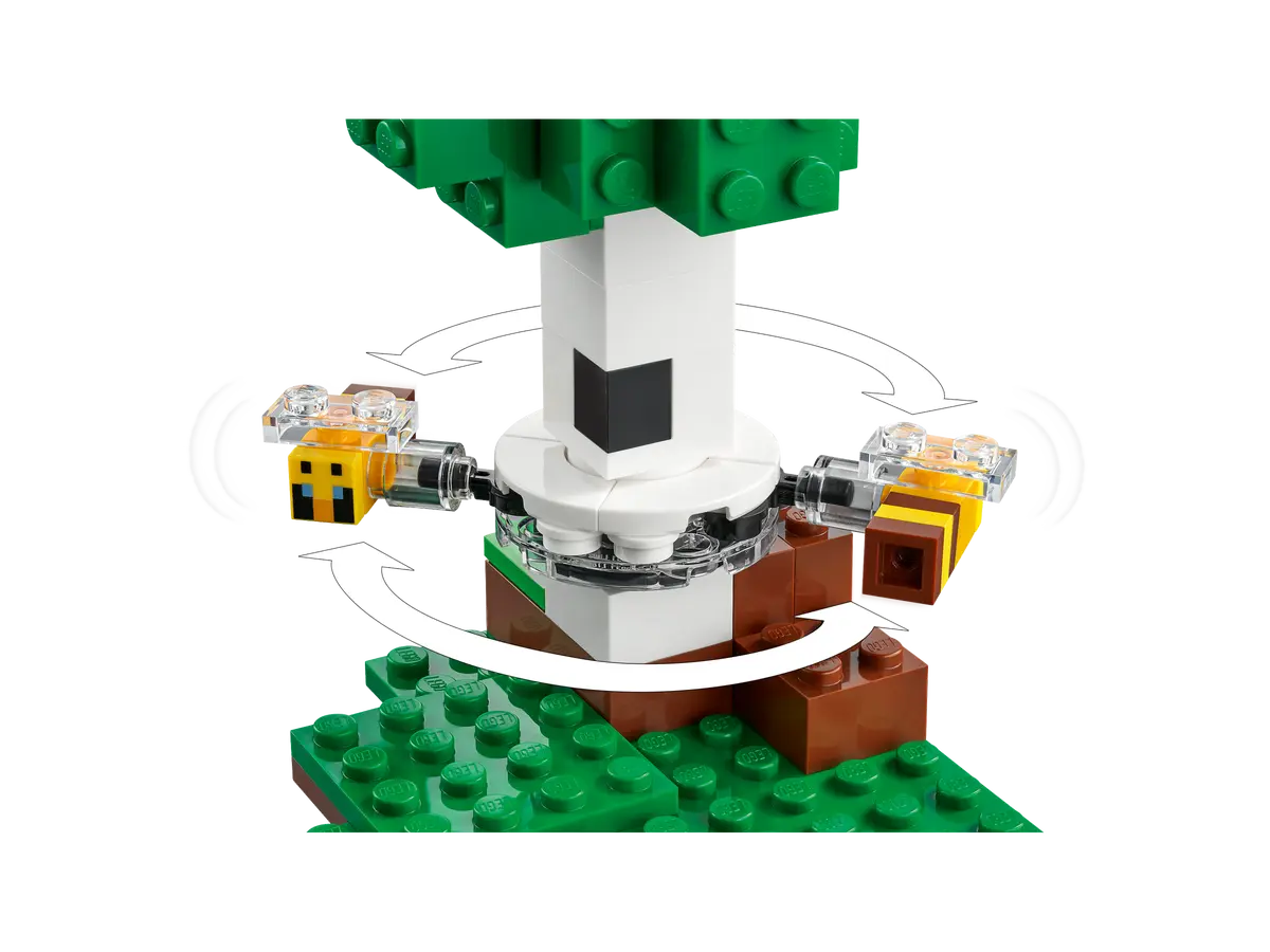 Players use their creative Minecraft building skills to construct a bee-shaped house. A removable roof provides easy access to the interior. Outside, there’s honeycomb to harvest from the beehive, crops to grow at the farm and hostile mobs to defend against. The set includes a Honey Bear player character, baby zombie, 3 bees and 1 angry bee. Features include 2 bees that race around a tree with the flick of a finger. For added digital fun, the LEGO Builder app features intuitive zoom and rotate tools that let kids visualize their model as they build.