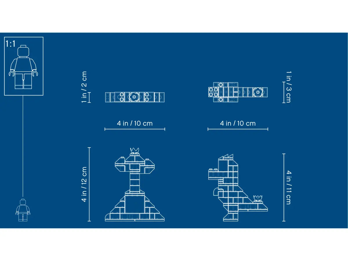 - Queen Watevra Wa’Nabi in pile-of-bricks form measures over 4” (11cm) high, 2” (7cm) wide and under 1” (1cm) deep.