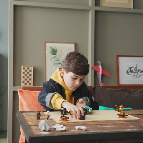 Ninja fans aged 7+ will love playing out scenes from the NINJAGO® Dragons Rising TV series using the never-before-seen spinning function on Zane’s Dragon Power Spinjitzu Race Car (71791). When they push down the spoiler at the back, the car’s rear wheels lift and it moves on its dragon power elements so that the ninja can take on the evil dragon hunters.