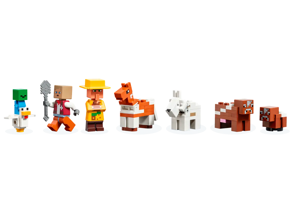 - شخصيات المزرعة الشهيرة - تحتوي مجموعة اللعب على مربي ماشية، وقروي في الغابة، وماعز، ودجاجة، وبقرة، وعجل، وحصان، وزومبي صغير، يسبب الأذى باعتباره فارس دجاج