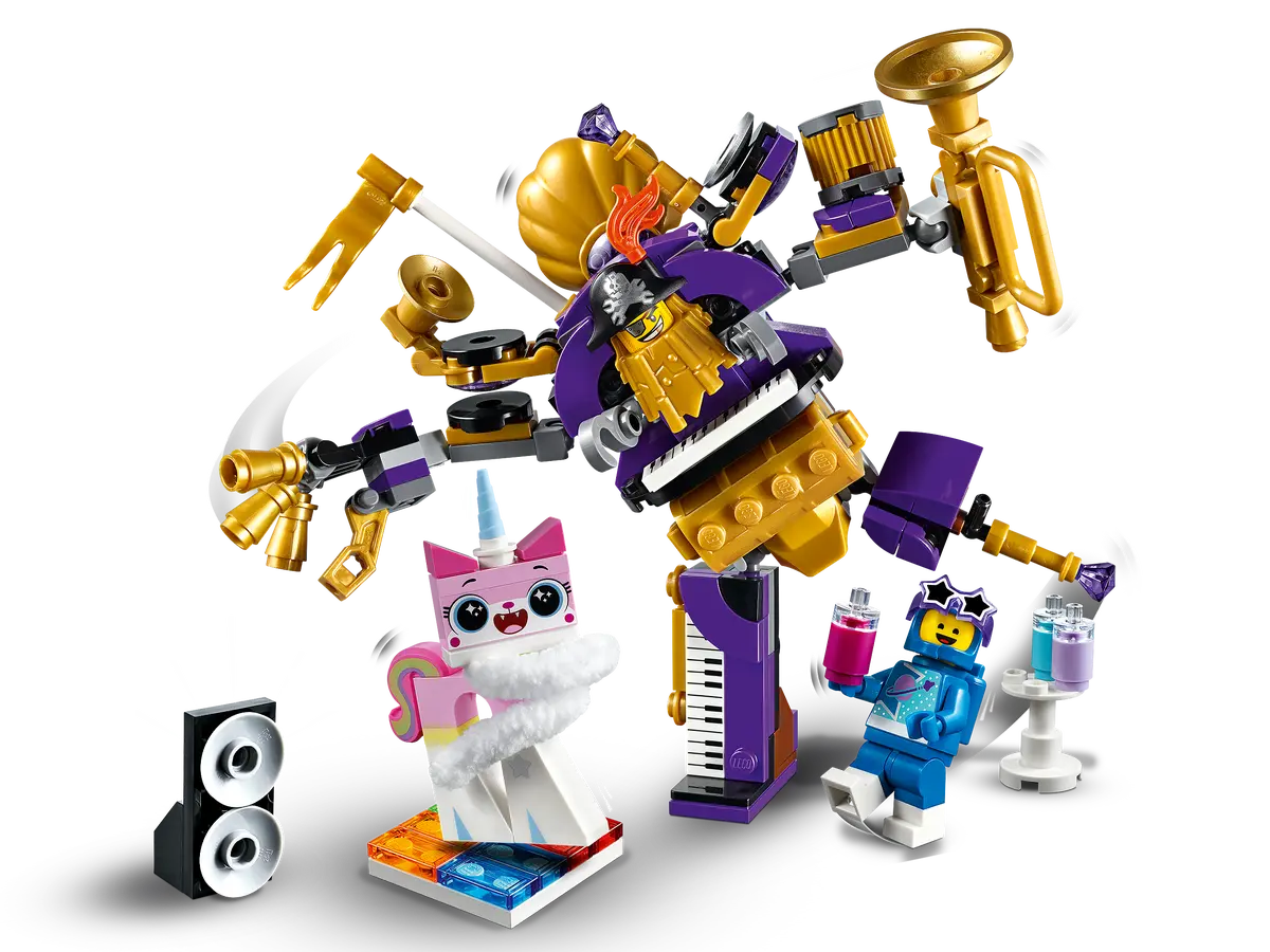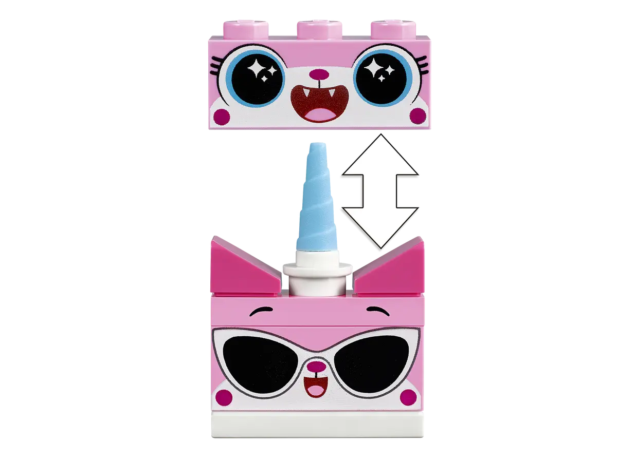 - تتضمن مجموعة THE LEGO® MOVIE 2™ هذه شخصية صغيرة من Stardust Benny جديدة لشهر أغسطس 2019 وشخصية Unikitty المبنية من الطوب في صورة Disco Kitty.