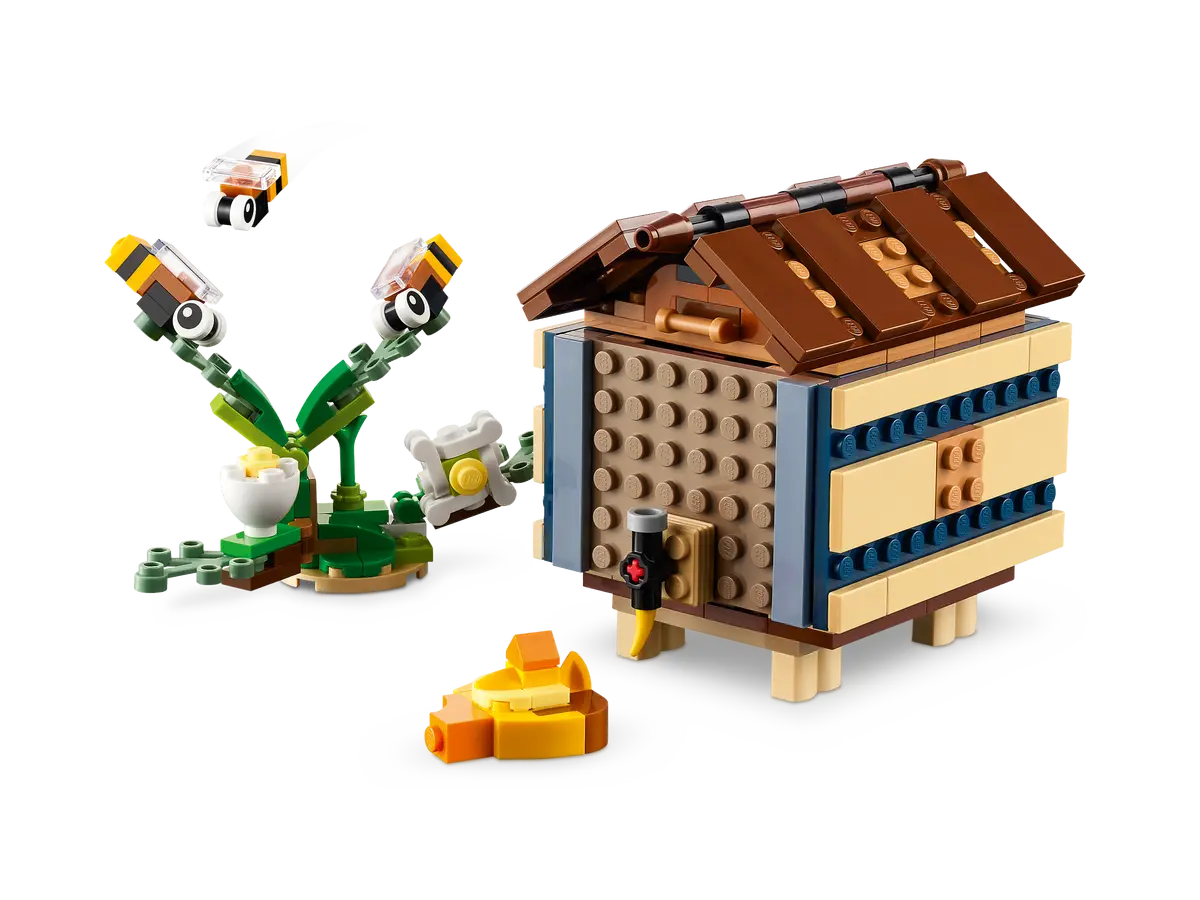 - 3in1 toy – LEGO® fans can play out enchanting animal stories with this LEGO Creator 3in1 Birdhouse (31143), featuring 3 scenes in 1: a birdhouse, park bench animals and a beehive