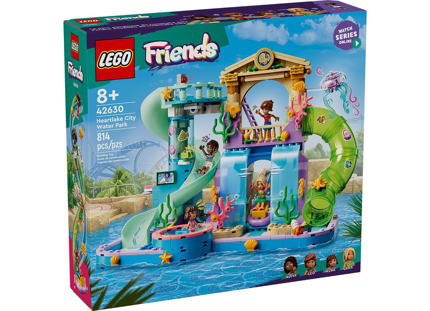 The LEGO® Friends Heartlake City Water Park playset (42630) for kids is packed with friendship and fun for girls and boys aged 8+. The set comes with 3 mini-dolls and a micro-doll, plus lots of accessories for creative play. Tell the story as Leo,Alba, Aliya and Sara enjoy a day filled with thrills and spills. Give the characters a spin in the rotating whirlpool or send them speeding down the 3 exciting aqua slides. There’s a corkscrew slide and a tube slide, plus a waterfall slide with a lever to launch the boat through the waterfall. The fun continues with the water blasters, which come with tile elements to fire. This LEGO building set for kids is filled with water park details, including a shower, restroom, lockers and snacks so children can enjoy hours of creative play. Discover more birthday gifts for kids in the range of LEGO Friends sets (sold separately). This toy comes with the LEGO Builder app for intuitive building.
