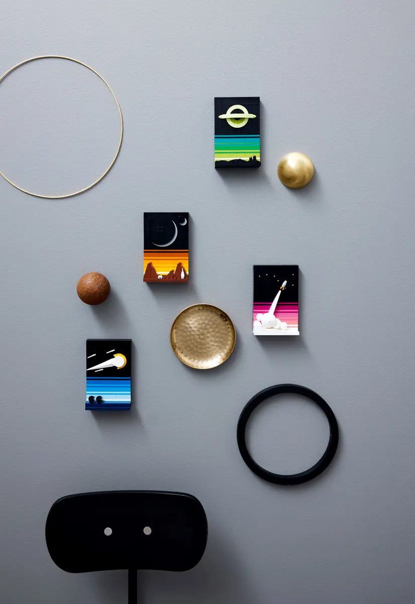 - 4 connectable, space-themed 3D postcards (21340) – Tell Tales of the Space Age in LEGO® style with these buildable postcard models, inspired by 1980s sci-fi myths, films, books and posters