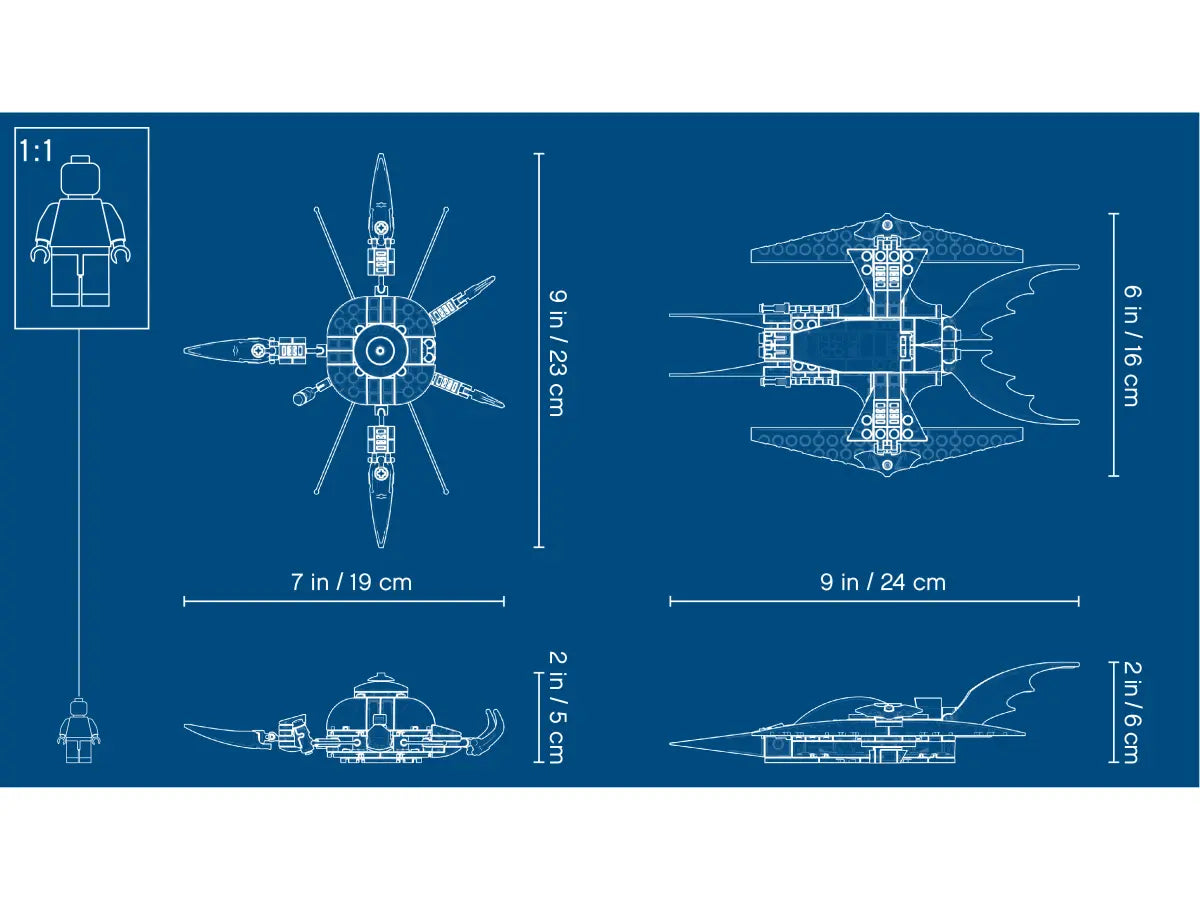 - Batjet measures over 2” (6cm) high, 9” (24cm) long and 6” (16cm) wide.