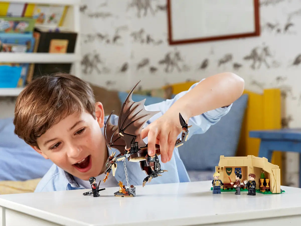 Give your young Harry Potter™ fan the chance to battle one of the most dangerous dragons in the wizarding world. The LEGO® Harry Potter 75946 Hungarian Horntail Triwizard Challenge is a gift for kids filled with magical adventures. Anyone aged 8 and over will love helping Harry compete against rival students from other schools of magic, as they strive to retrieve the mysterious golden egg. But that's not all. There's a Hungarian Horntail dragon to defeat! With its moveable limbs and wings, it'll take quick-thinking wizardry to outmaneuver this ferocious beast. With 4 minifigures included, this Harry Potter LEGO dragon set will inspire endless imaginative adventures.