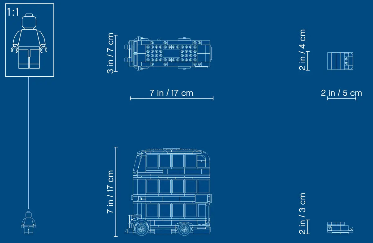 - The Knight Bus™ measures over 6” (16cm) high, 6” (16cm) long and 2” (6cm) wide.