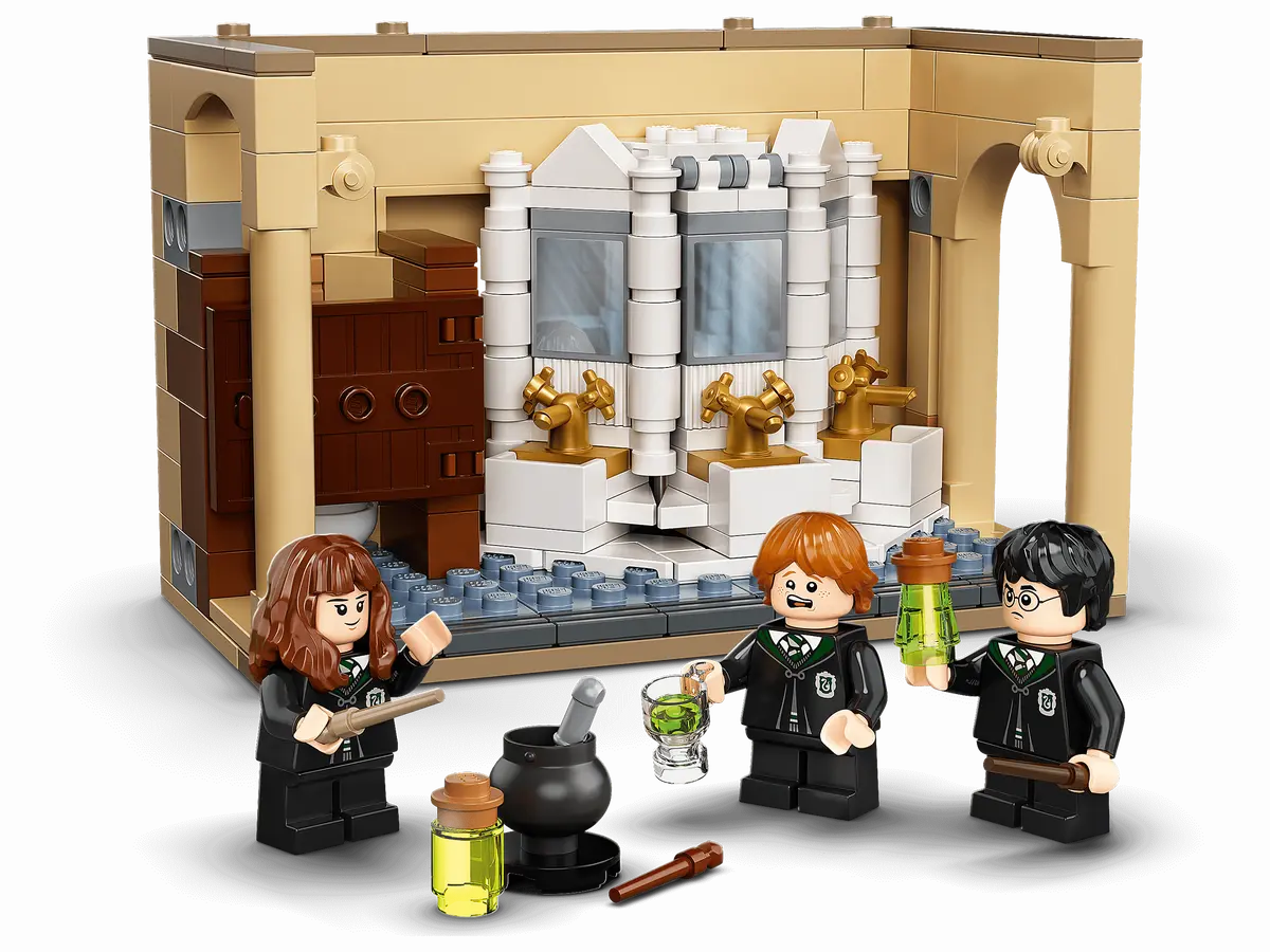 LEGO® Harry Potter™ Hogwarts™: Polyjuice Potion Mistake (76386) inspires magical adventures in the Hogwarts bathroom.