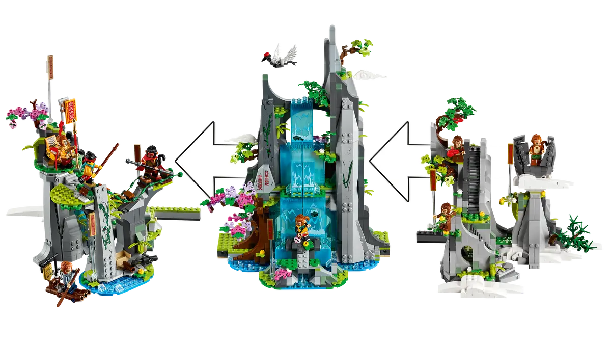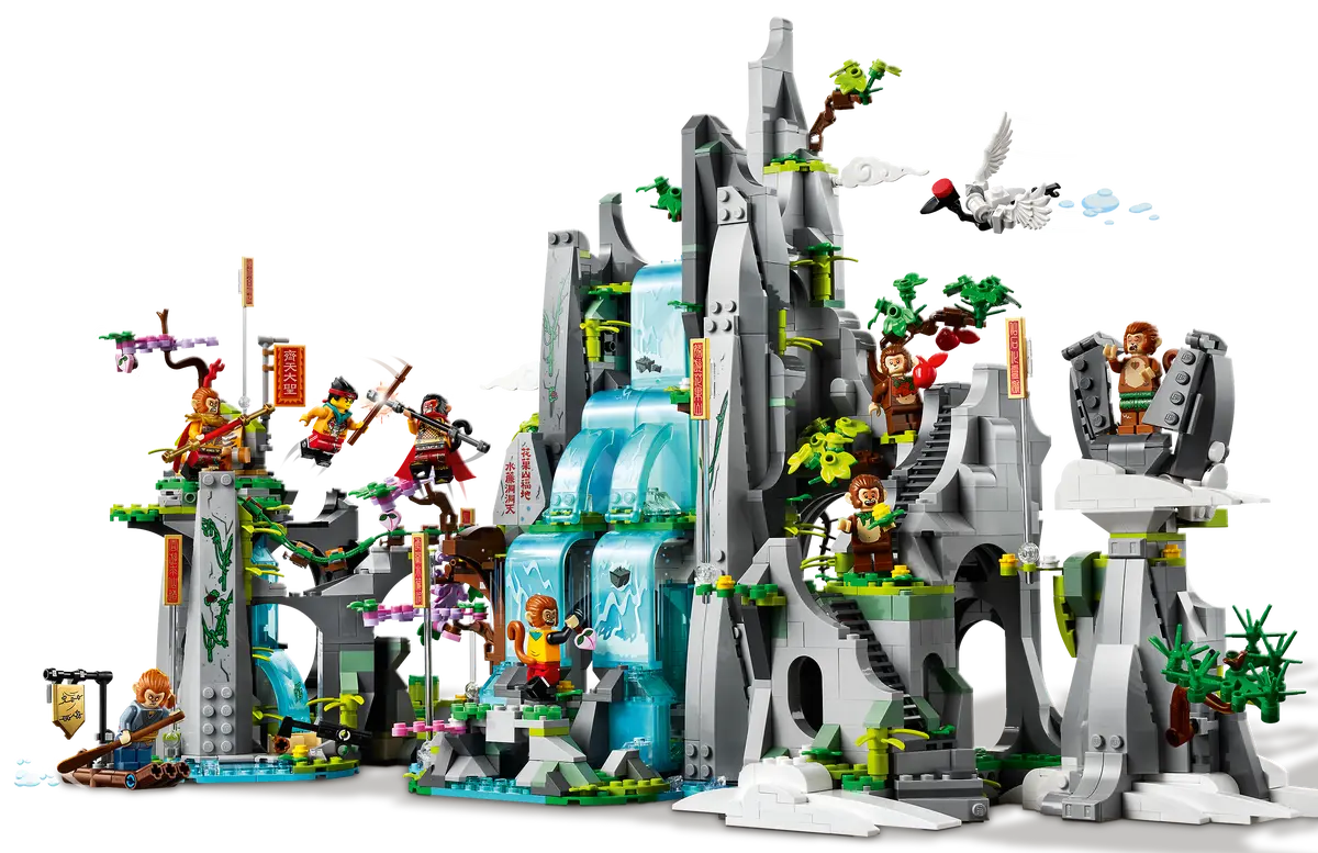 - Packed with authentic, storytelling features, including an opening rock to reveal the Monkey King, a buildable waterfall that opens to allow entry to the mountain and a buildable red-crowned crane.