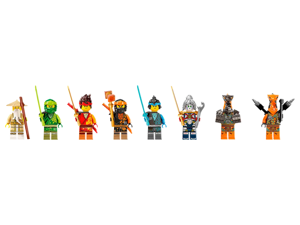 - 8 minifigures – Building set includes Master Wu, Cole, Kai, Lloyd, Nya and Pixal, plus the snakes Boa Destructor and Cobra Mechanic with their rammer vehicle, to play out battle clashes
