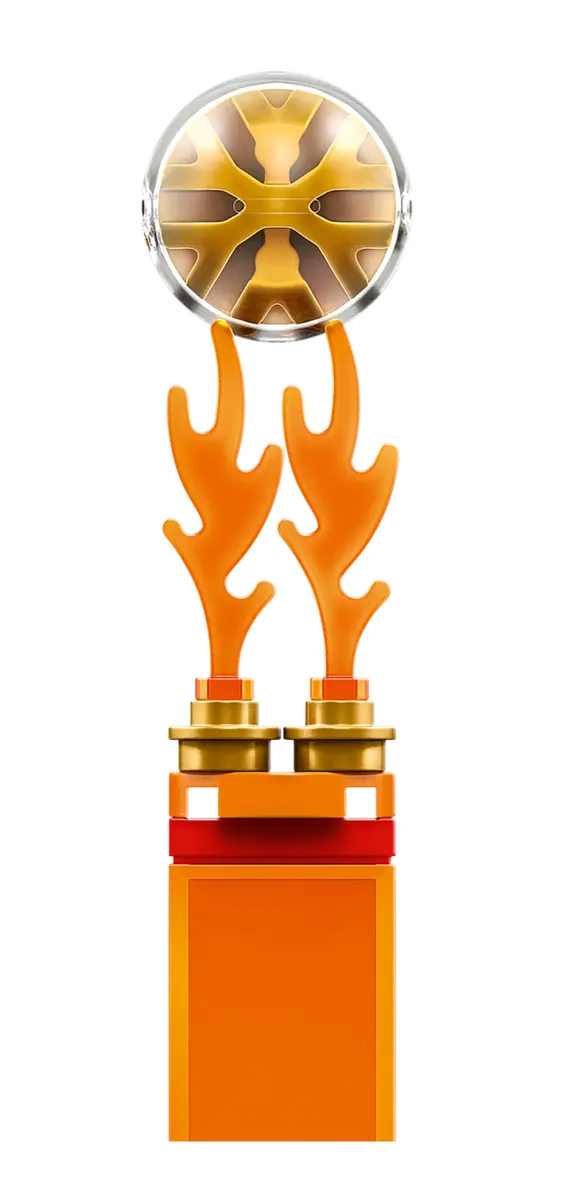 - Ninja prize – The durable playset also features a flaming holder with a collectible golden dragon energy core element, which Kai must win, and 2 flame obstacle elements
