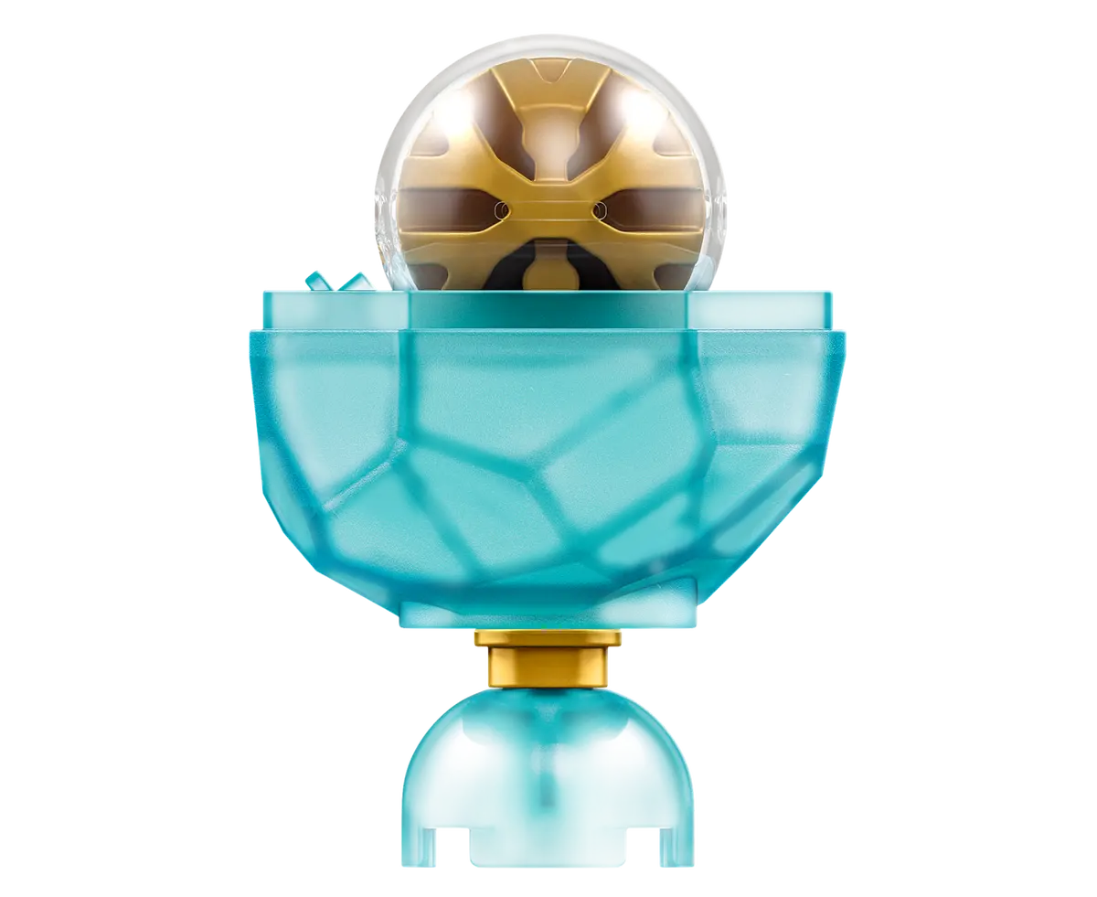 Kids can place Dragon Power Nya in the spinner adorned with 3 exclusive dragon power elements, push forward on itand watch as she drifts. Her task is to avoid the water obstacle elements, conquer the Imperium Droid holding a staff and grab the collectible golden dragon energy core element from its bowl. There is also a blue dragon power element and kids can collect 4 more in different colors in other NINJAGO® sets.