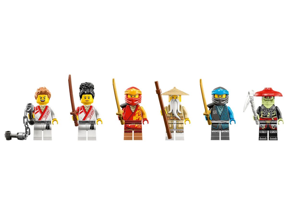 - 6 minifigures – Playset includes Kai, Nya, Master Wu, female and male apprentices and Bone Hunter, who each come armed with their own weapons so kids can enjoy role-play action
