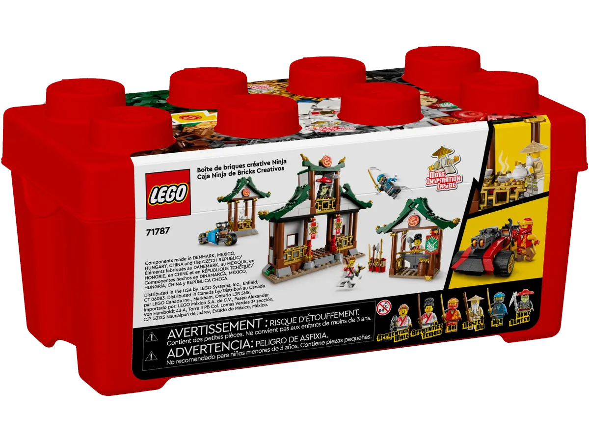 - Action-packed playset – Kids have all they need to train up their ninja heroes with the LEGO® NINJAGO® Creative Ninja Brick Box (71787), featuring 3 buildings, 3 obstacles and 2 vehicles