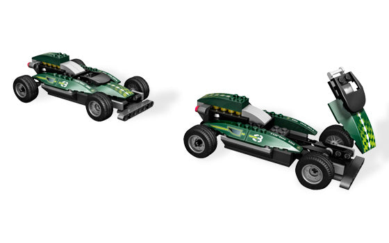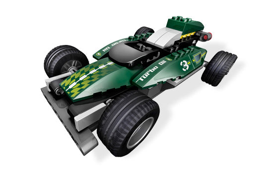 The Phantom Crasher is built for speed -- and crashing! This turbo-charged racer powers down the track with its pull-back motor, and the entire front end pops up on impact. Good thing it's easy to snap back down and get back in the race! Combine with #8141 Off Road Power to make a mean green monster machine! Features cool "crashing" function! Includes pull-back motor!