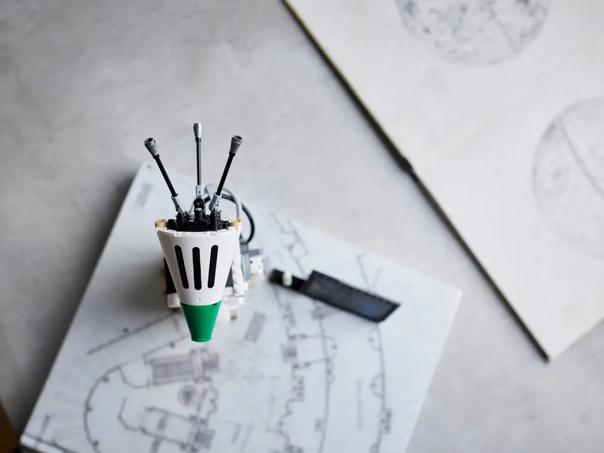 This LEGO set includes a built-in stand for the construction model, plus an information sign with a cute D-O minifigure to make an eye-catching display at home or in a workplace.