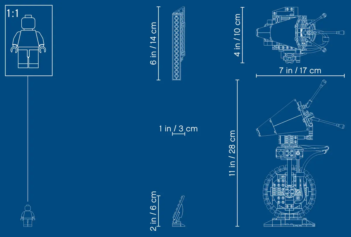 - The buildable D-O droid measures 10.5” (27cm) high, 4” (10cm) wide and 6” (16cm) deep – it doesn't take up too much space but will make a big impression displayed at home or in the office for friends to admire.